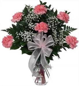 6 hermosos claveles en un florero. El color se puede cambiar según la disponibilidad.